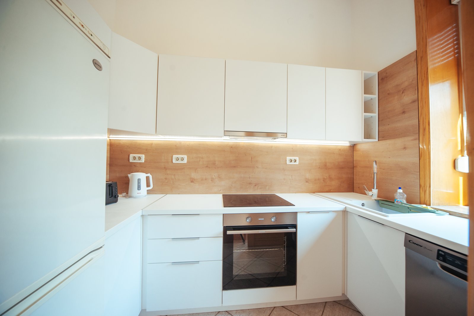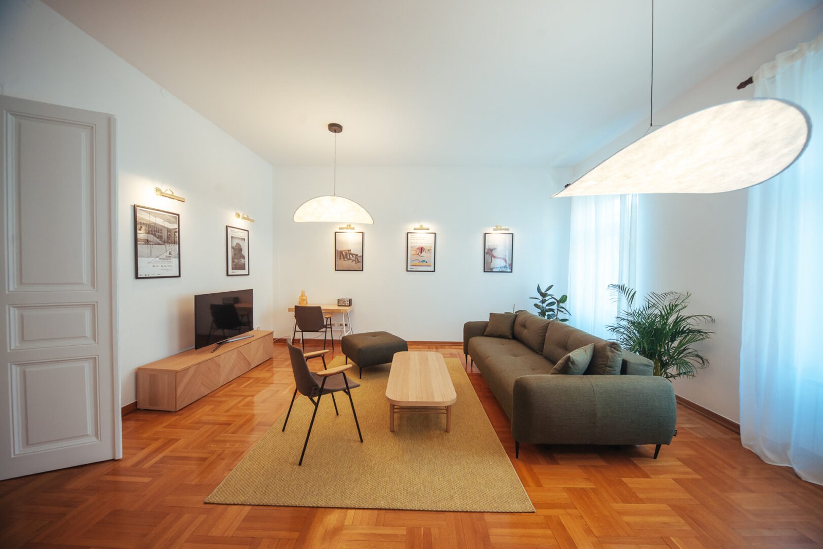 Our apartment features a spacious living area where you can unwind after a day of exploring Zagreb. The comfortable seating, flat-screen TV, and high-speed Wi-Fi make it easy to relax, catch up on work, or enjoy some entertainment. Large windows fill the space with natural light, enhancing the airy and open feel of the apartment.